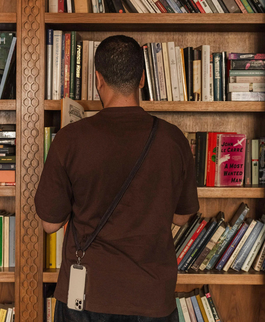 Jedes Band besteht aus 100 % Naturfasern, die mit Präzision auf einem komplizierten Webstuhl gewebt werden. Anschliessend wird es von der Frauenvereinigung in Marrakesch sorgfältig vernäht. Das Band ist robust und langlebig und sorgt dafür, dass dein Telefon sicher ist.