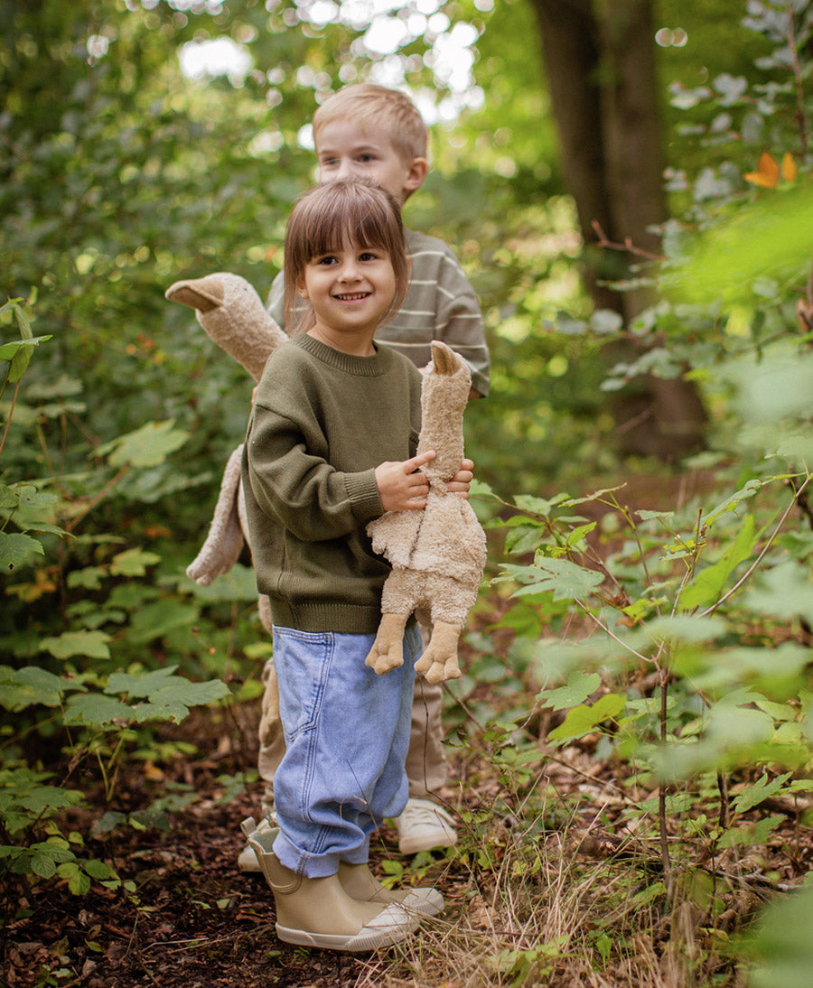 Handgefertigtes und ökologisches Kuscheltier (Gans, beige / Leinenfarbe) von Senger Naturwelt. Ein Stofftier und Wärmekissen zugleich. Die ökologische Baumwolle macht es weich und anschmiegsam. Im Inneren hat es ein herausnehmbares Baumwollkissen, welches mit Kirschkernen gefüllt ist. So kann das Stofftier auch als beliebtes Wärmekissen eingesetzt werden.