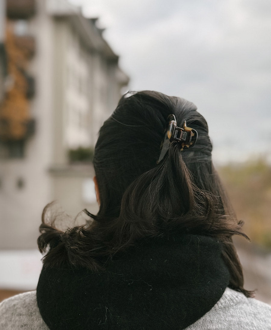 Haarklammer aus Acetat. Hergestellt in einem Traditionsbetrieb in Frankreich, nahe der Grenze zur Schweiz.