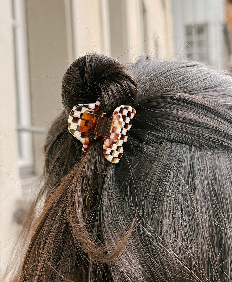 Kleine Haarklammer "Chiara" aus Acetat (Karo)