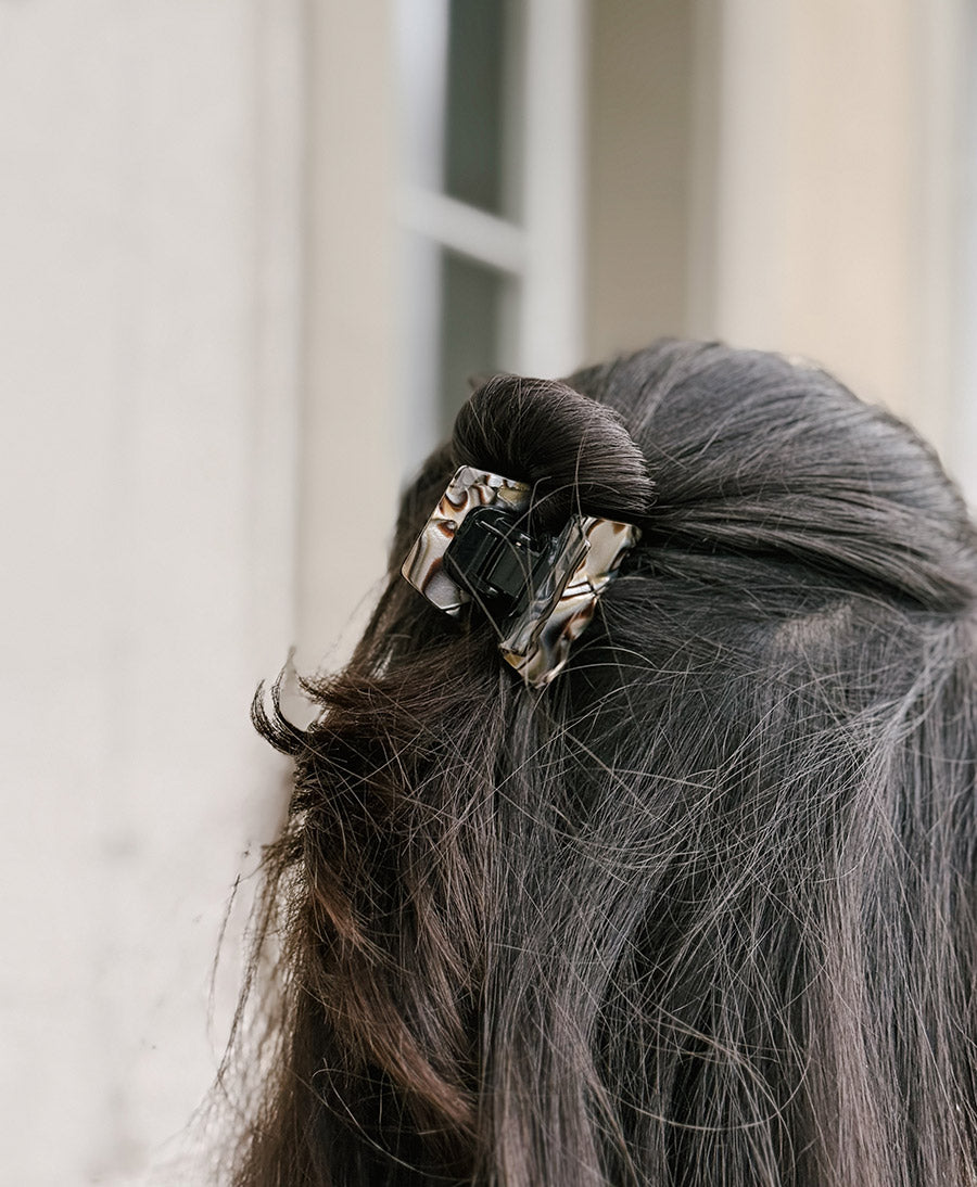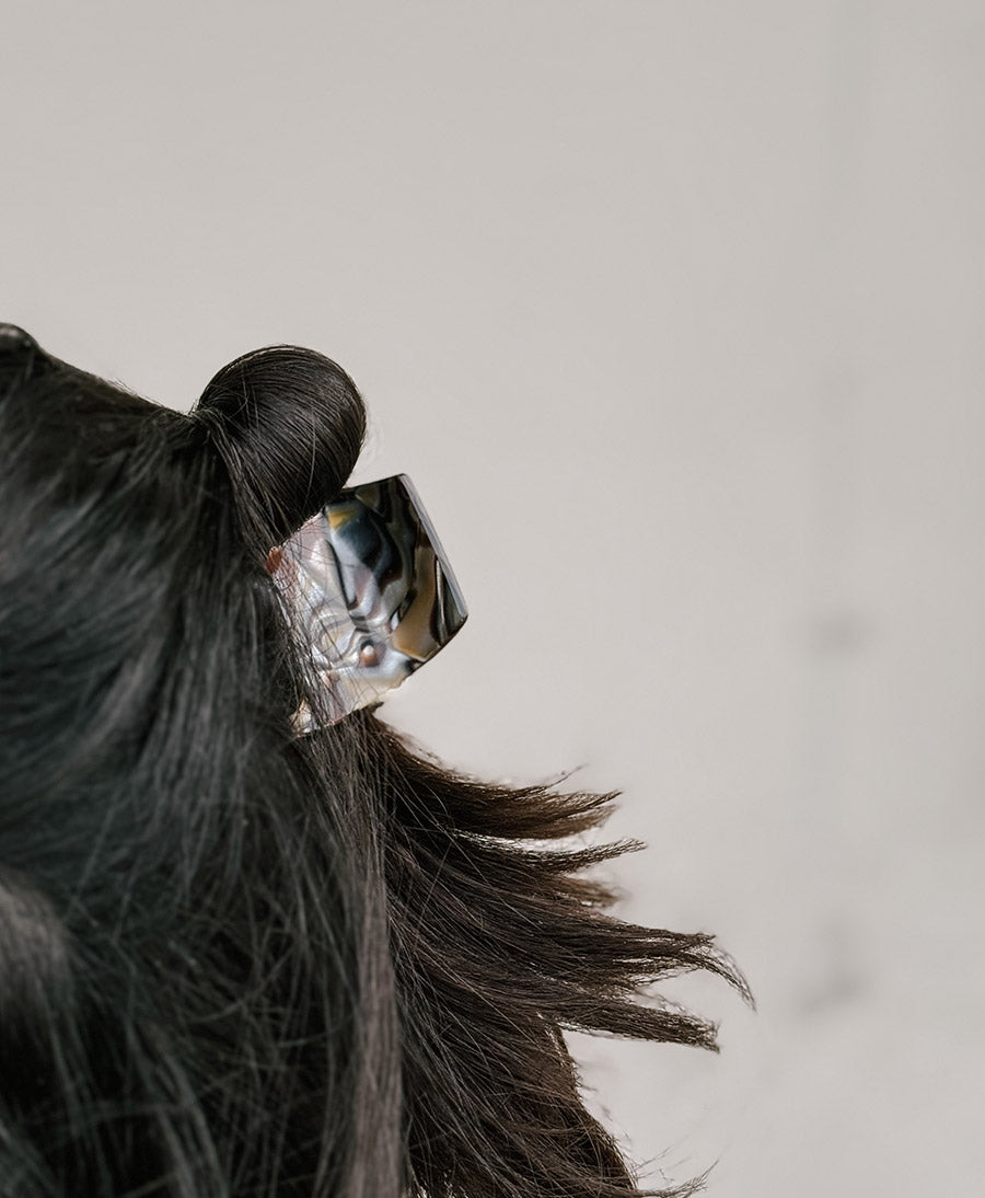 Haarklammer aus Acetat. Hergestellt in einem Traditionsbetrieb in Frankreich, nahe der Grenze zur Schweiz.