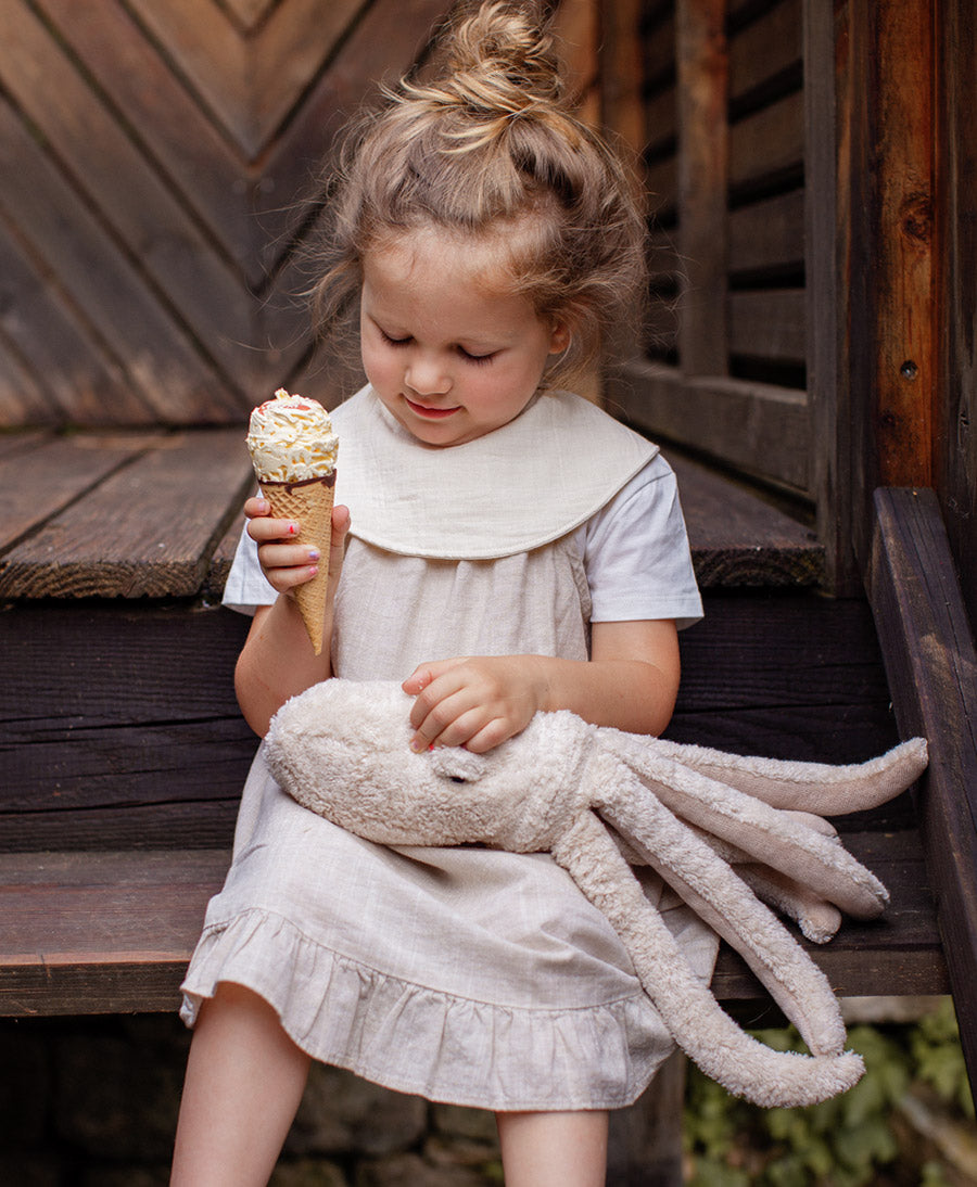 Der kleine Oktopus ist voller Charme – ein kuscheliger Begleiter für kleine Abenteuer. Handgefertigt aus GOTS-zertifiziertem Bio-Baumwollplüsch und gefüllt mit reiner Schafschurwolle. Im Inneren sorgt ein herausnehmbares Traubenkernkissen für natürliche Wärme oder angenehme Kühlung. Perfekt zum Spielen, Kuscheln und Liebhaben. Ein treuer Freund & Wegbegleiter durch die Kindheit.