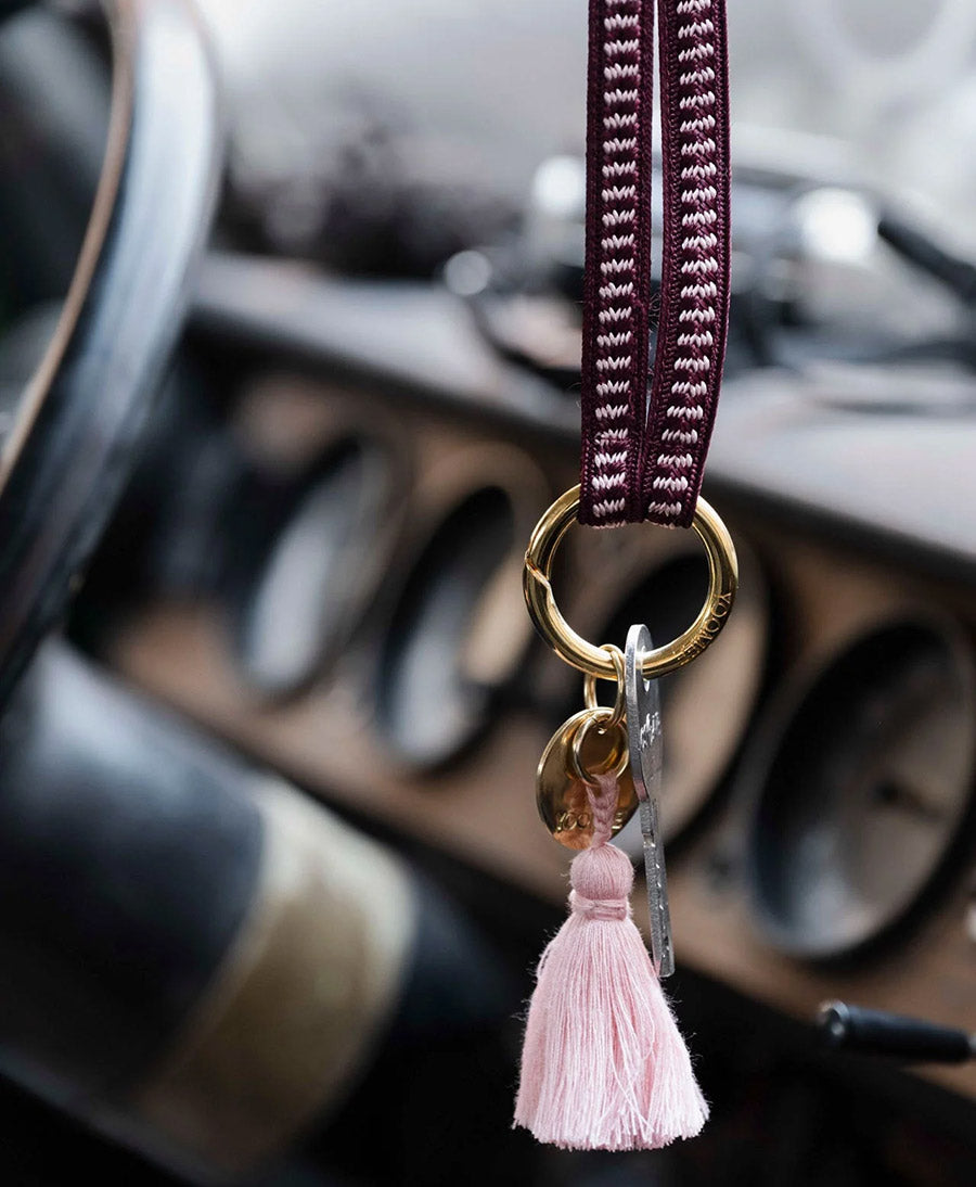 Dieses Schlüsselband / Keychain von YOOMEE ist der perfekte Schlüsselanhänger in deinem Alltag. Die Farbe "Cherry Blossom" ist ein schönes Dunkelrot mit einem Muster in Rosa.